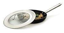 The RSVP Endurance Universal Lid with Glass Insert fits pots or pans from 7" to 12" in diameter. Made from heavy gauge stainless steel with a tempered glass insert with steam vent and durable riveted handle. Dishwasher safe.